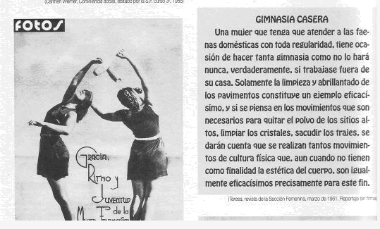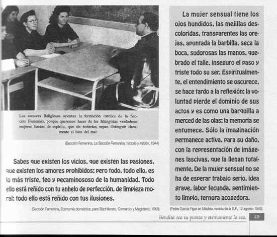 I, per si encara nhi han que pensen que l escola franquista no fou repressiva, especialment amb la dona, adjunto algunes mostres del que es deia en els llibres de la Seccin Femenina en els anys 50. Alg els va guardar i els va difondre per Internet. Jo sols ho he adaptat per a aquesta pgina. Les dones del PP, no volen condemnar el franquisme ni retirar els seus smbols dels carrers de Ciutat?. Avemariapurssima